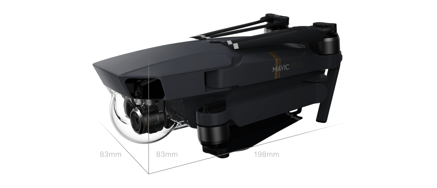 Die grösste Neuerung an der neuen DJI Flugplattform ist das kompakte Format, die Mavic kann überall hin mitgenommen werden und passt mit seinen kompakten Abmessungen von 83 x 83 x 198mm und 743gr perfekt in einen Rucksack, eine Handtasche oder das übliche Gepäck wenn man unterwegs ist und der Platz knapp ist.